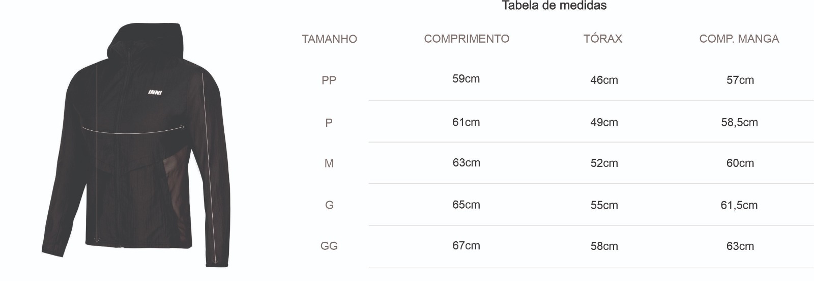 Possui capuz, tem detalhe de tule com transparência nas costas, e é leve e compacta para guardar e transportar.