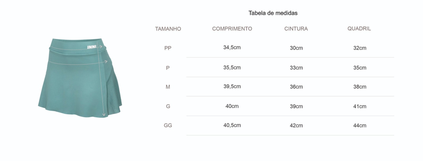 A saia skort 2x1 INNI Game foi pensada para jogadoras que buscam estilo e liberdade de movimento nas quadras. Com visual leve e design funcional, a peça une a aparência de uma saia com a segurança do short interno de compressão, garantindo suporte muscular e firmeza durante deslocamentos rápidos.
